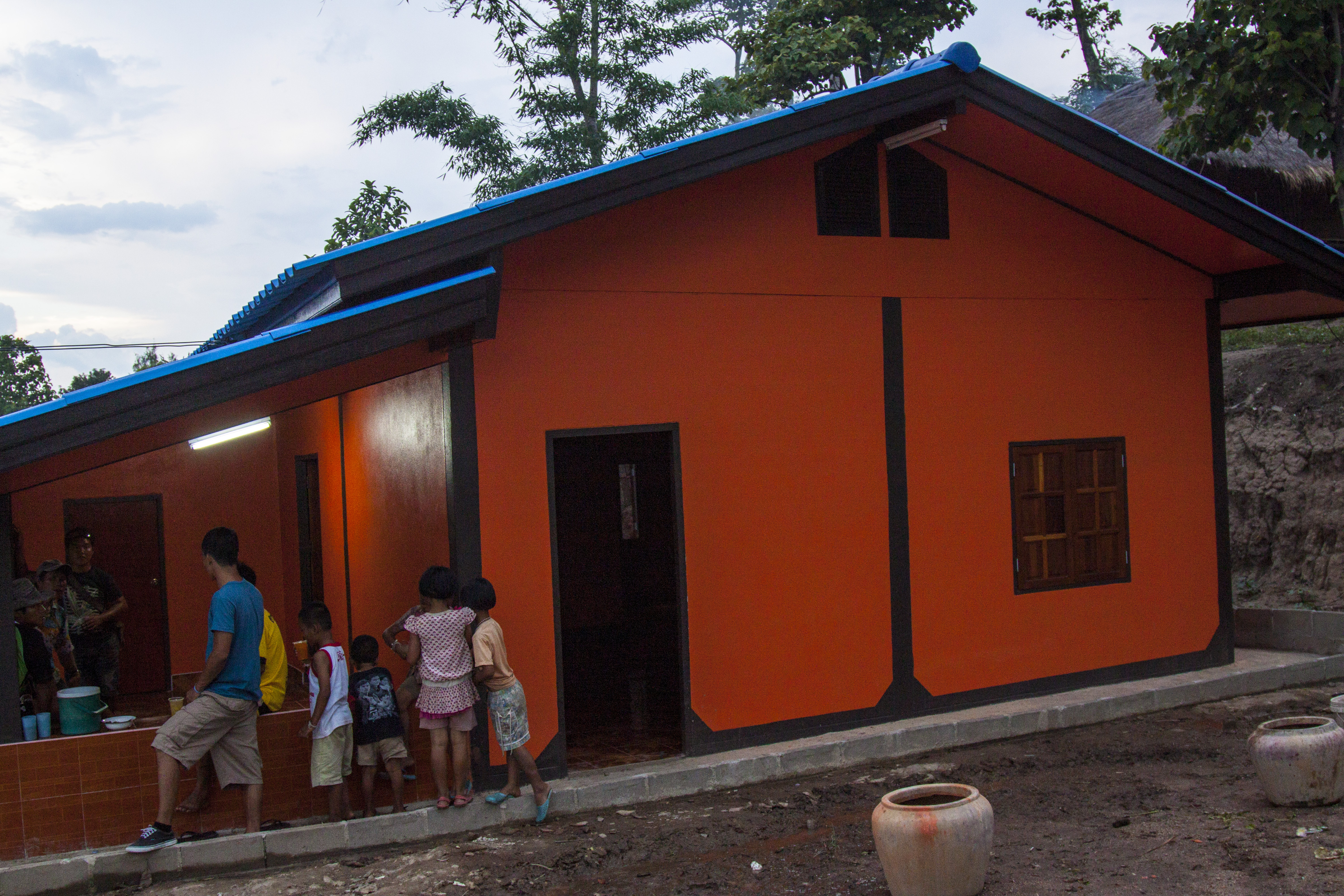 Fame told me that the man who had just built this house we were celebrating had been working in Phuket (southern beach area of Thailand) selling bracelets and had earned the 500,000 baht to build the beautiful home we were standing in. The young man (probably no older than 27) claimed to have been selling bracelets, but it is highly unlikely that is all he was selling. Drugs and sex were more than likely part of the mix of things for sale, yet parents of young kids see this type of “success” and immediately resign their children’s futures to similar fates—– selling things in the cities and tourist areas so that they can be provided for. These beautiful homes being built only perpetuate the problem of parents sending children off. A nice house, wife, and children in the village is seen as success and education isn’t valued highly. Young kids also see these houses being built and aspire to similar futures. Phuket and other Thai cities seem more than desirable, however, the success rates of kids going to these cities and making a good living is very low. Three weeks ago, one of our boys moved to Krabi (another beach and tourist area) and was back within a month as he described his inability to make ends meet by selling bracelets. He told our staff that most people aren’t successful when moving to the south, not something he was expecting but learned on his brief move. It is an illusion that selling bracelets alone can provide a sustainable income. Many of the boys who leave for the city end up in the boy bars for this very reason: there are limited or no other options for these kids. Their darker skin alone already relegates them to fewer job opportunities. Sex is easy money, and the kids take advantage of the despicably thriving market. Seeing the traditional thatch roof hut directly across from the modern home we were celebrating painted the perfect picture of the current social disparities in the village. We moved on as day turned to night.