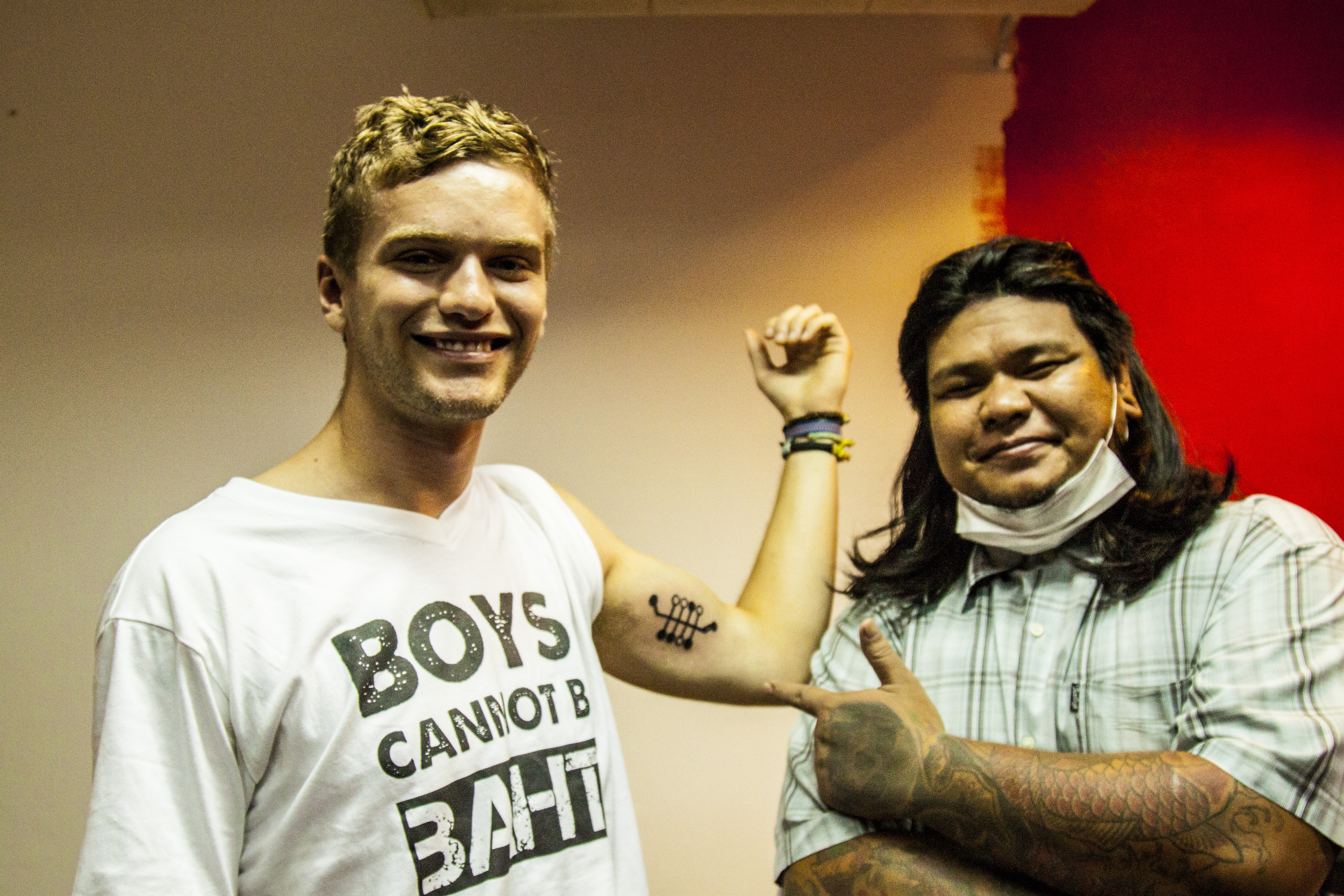 We agreed that I would get my tattoo in Thailand and send Darryl the dimensions so he could get the mirror image done in Baltimore. I got mine on Monday and Darryl had his done in Baltimore on Tuesday: