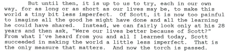 I recently read a letter written to my Uncle Scott’s best friend in Africa shortly after his funeral in Bittinger. The end of it puts things into words better than anything I could ever do: